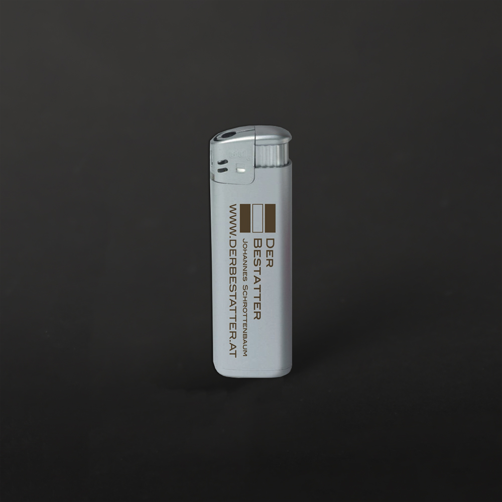 Feuerzeuge sind auch außerhalb der Bestatterbranche weit verbreitete Werbepräsente. Doch gerade zum Anzünden von Trauerkerzen, an Friedhöfen für die Grablichter oder im Traueralltag werden Feuerzeuge häufig gebraucht. Eine zündende Idee? Veredeln Sie die nützlichen Alltagsbegleiter mit Ihrem Logo oder Werbeslogan. Funktionale Werbeartikel wie diese bieten Ihren Kunden einen konkreten Mehrwert - und werden somit nicht als aufdringlich empfunden. Ein einfaches Feuerzeug kann für Ihre Kunden ein sehr pietätvolles Geschenk sein, zum Kerzenanzünden auf Trauerfeiern oder für einen Raucher auf einer Beerdigung.