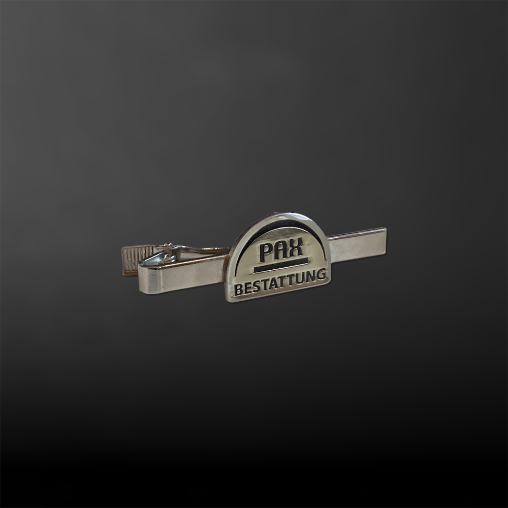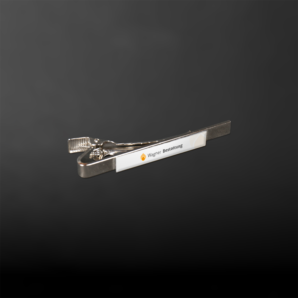 Mit einer personalisierten Krawattennadel ist ein stilsicherer Auftritt Ihrer Mitarbeiter kein Problem. Die Krawattenklammer ist ein stylisches Accessoire für ein professionelles Aussehen. Außerdem kann dank der praktischen Spange die Krawatte nicht mehr ins Essen hängen. Wir gestalten gerne für Sie eine Gravur mit Name und/oder Logo für Ihren Bestattungsbetrieb.