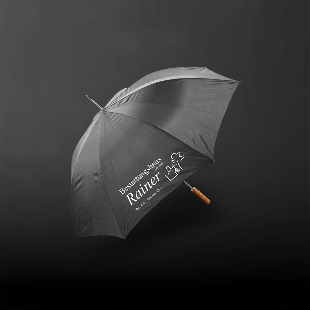 Ein Regenschirm kann ein durchaus pietätvolles und hilfreiches Werbegeschenk sein. So kann der bedruckte Schirm auf einer Trauerfeier verteilt werden, falls ein Gast seinen vergessen hat. Wir bieten Ihnen hochwertige und stilvoll verarbeitete Regenschirme, die Sie mit Ihrem Logo veredeln lassen können. Was dieses Werbegeschenk so besonders macht, ist die Aufmerksamkeit des Bestatters gegenüber Gästen einer Trauerfeier, der an einen solchen Fall gedacht hat.